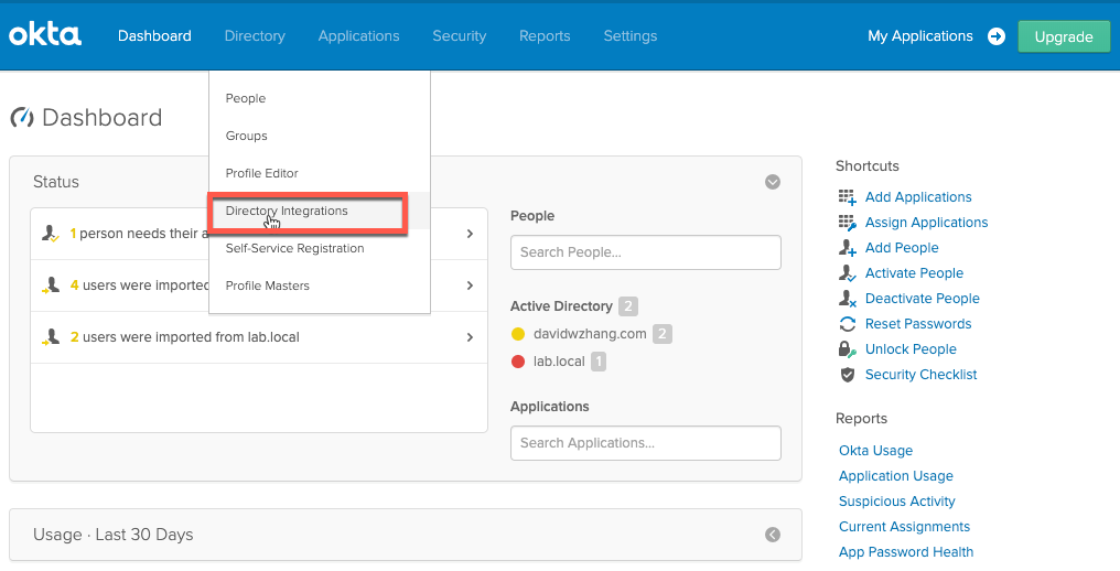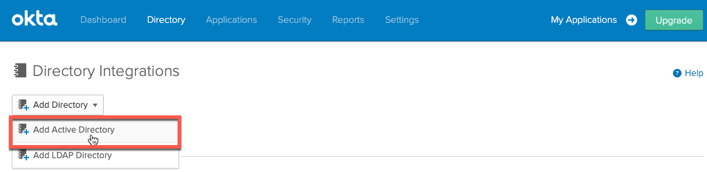 Click the “Directory Integration” in Okta UI.