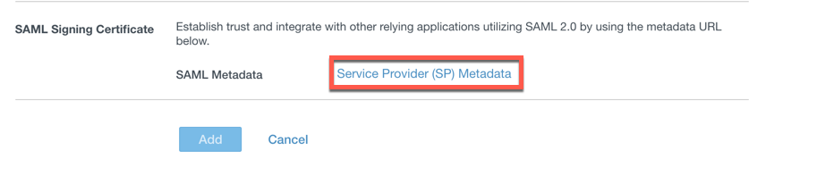Go to the bottom of this IdP creation window and click “Service Provider (SP) Metadata”.
