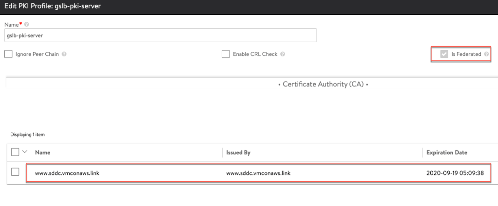 - Is Federated: Yes. That is to say that the PKI profile will be replicated across the federation: SDDC01 and SDDC02.