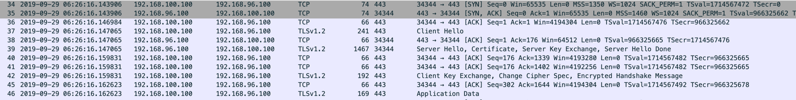 The cross-site traffic between Avi LBs can be verified via a packet capture on SDDC02 Avi LB. From the packet capture, we can see the HTTPs session which is destined for SDDC02 is now forwarded from SDDC02 to SDDC01 by SDDC02 Avi LB.