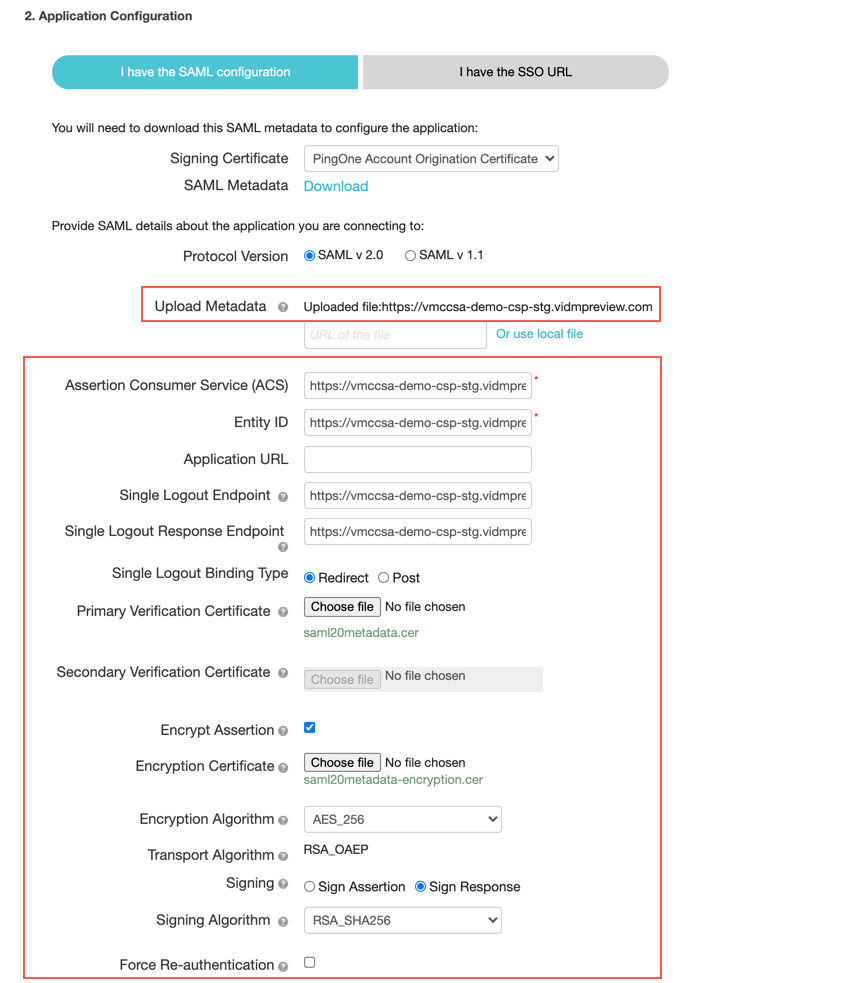 To provide the required information in the Application Configuration page, we need to get the metadata from your vIDM tenant.